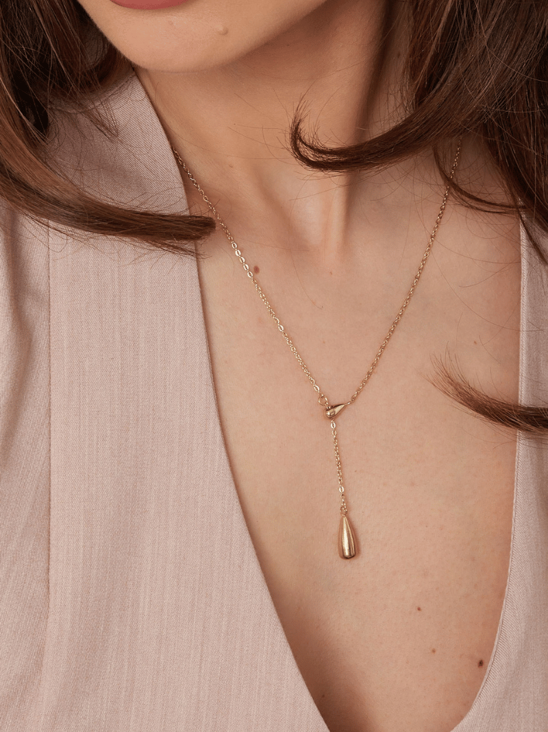 Inspiriert von Tropfenanhänger und perfekt für den Abend – diese Halskette begeistert mit ihrem eleganten Design. Gefertigt aus hochwertigem Edelstahl und in Gold, wird sie zu einem zeitlosen Begleiter, der jedes Outfit stilvoll abrundet.